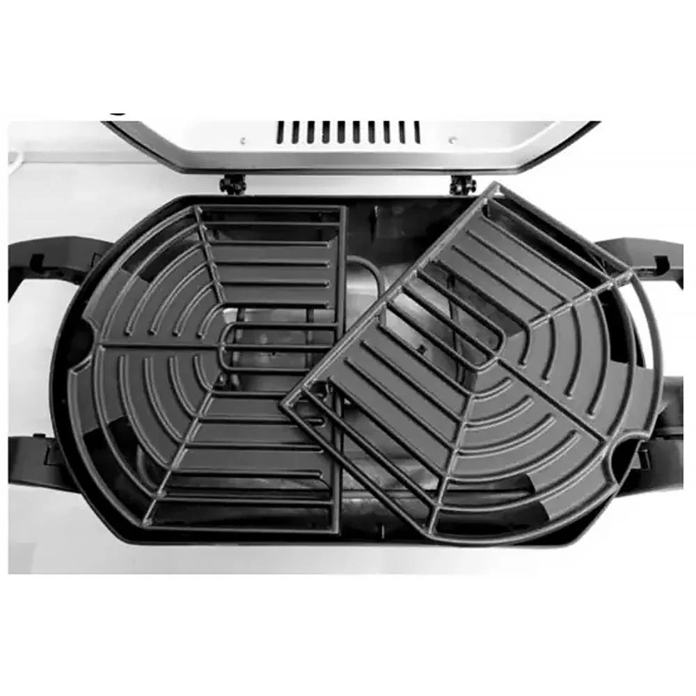 В комплект входят прочный стальной корпус и откидная крышка с термостойкой краской, две чугунные решетки для гриля, нагревательный элемент из нержавеющей стали мощностью 2200 Вт, съемный поддон для сбора жира, регулировка температуры и сверхдлинный шнур питания XL длиной 1,75 м.
